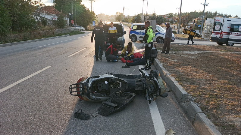 İhbar üzerine olay yerine sağlık ve polis ekipleri sevk edildi. Kazada motosiklet sürücüsü ile hafif ticari araç sürücüsü ve hafif ticari araçta yolcu olarak bulunan Kerim D.(25) yaralandı.